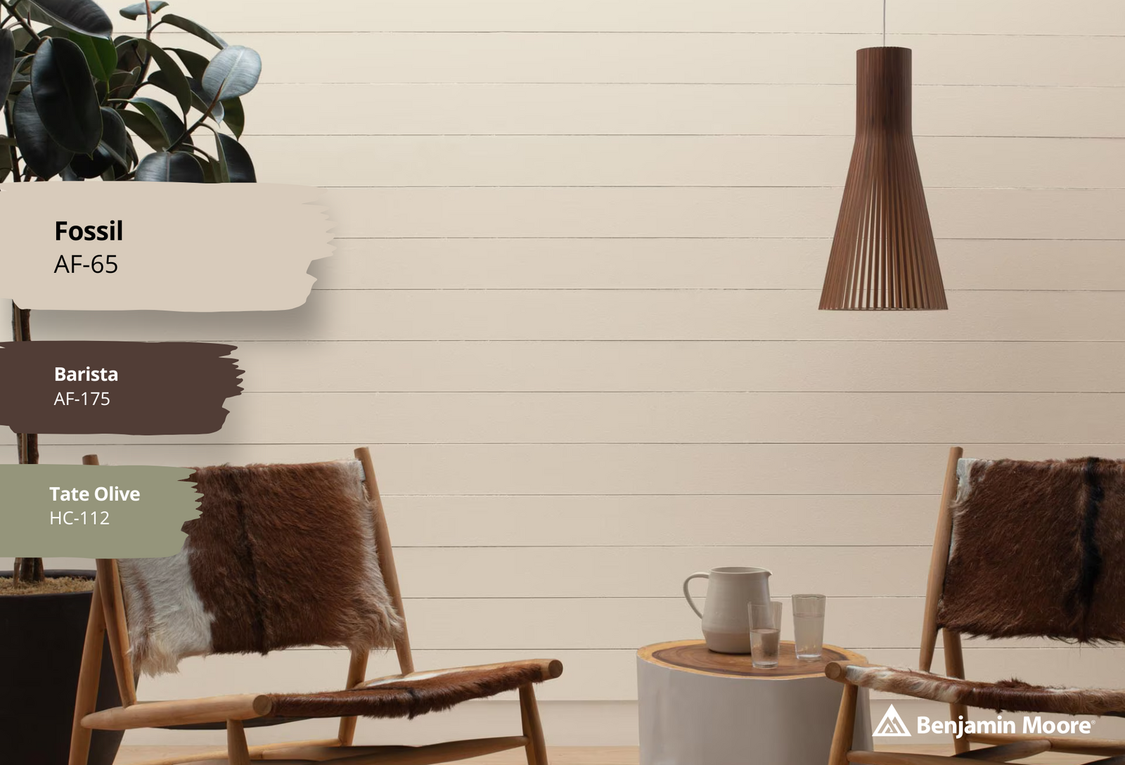 Using Fossil AF-65 alongside Tate Olive can bring a touch of nature indoors, as the warm green complements the neutral tone of Fossil. This combination is perfect for creating agrounded and earthy feel in spaces like living rooms and bedrooms, where comfort and relaxation are key.