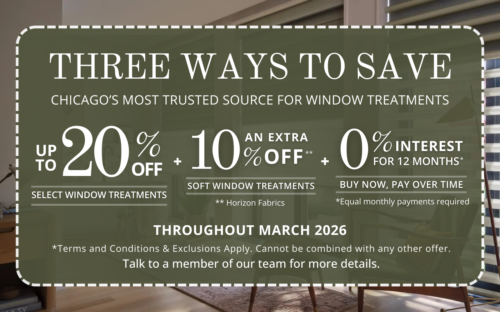 + An additional 10% off Soft Window Treatments**