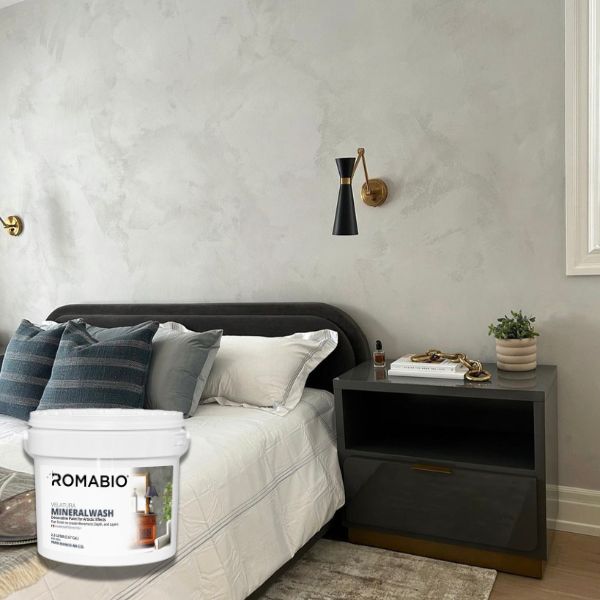 Velatura Mineralwash is an authentic mineral-based paint to create mottling or subtle movement effects for a limewash look on Interior drywall in two easy steps with no additional primer. An artistic applicator can paint soft tonal color variations in a brush-applied cross hatch technique for the 1st coat and can use varied techniques with a brush, cloth, or rag for the 2nd coat.